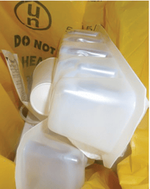 An example of clean composite packaging in a clinical risk waste bin: